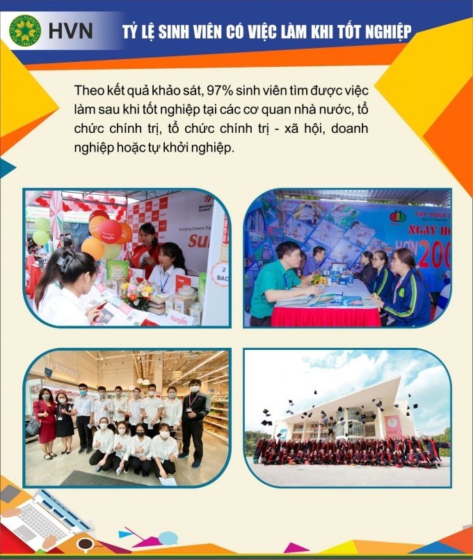 Bên cạnh đó, Học viện tăng cường trang bị kiến thức chuyên môn, kỹ năng mềm cho sinh viên; hợp tác với các doanh nghiệp trong bố trí việc làm/việc làm thêm cho sinh viên, cấp học bổng cho sinh viên, hỗ trợ sinh viên thực hành/thực tập tại doanh nghiệp; tổ chức các hội thảo, hội nghị, tập huấn, chia sẻ kinh nghiệm giữa sinh viên với doanh nghiệp, sinh viên với cựu sinh viên để bồi dưỡng kiến thức chuyên môn, kỹ năng mềm cho sinh viên, trang bị cho sinh viên xu hướng việc làm, kinh nghiệm tìm kiếm việc làm…