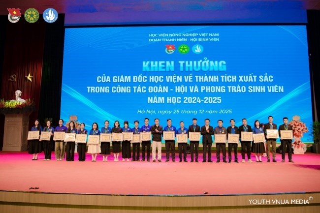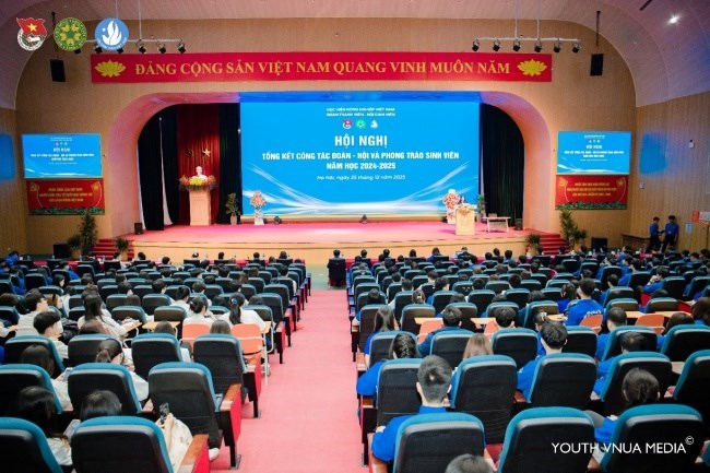 Ngày 25/12, tại Học viện Nông nghiệp Việt Nam, Đoàn Thanh niên - Hội Sinh viên Học viện tổ chức Hội nghị tổng kết công tác Đoàn - Hội và phong trào sinh viên năm học 2024-2025. Hội nghị là dịp đánh giá toàn diện kết quả triển khai các phong trào, chương trình công tác trong năm học, đồng thời ghi nhận, biểu dương những tập thể, cá nhân tiêu biểu có nhiều đóng góp cho sự phát triển của công tác thanh niên, sinh viên trong Học viện.