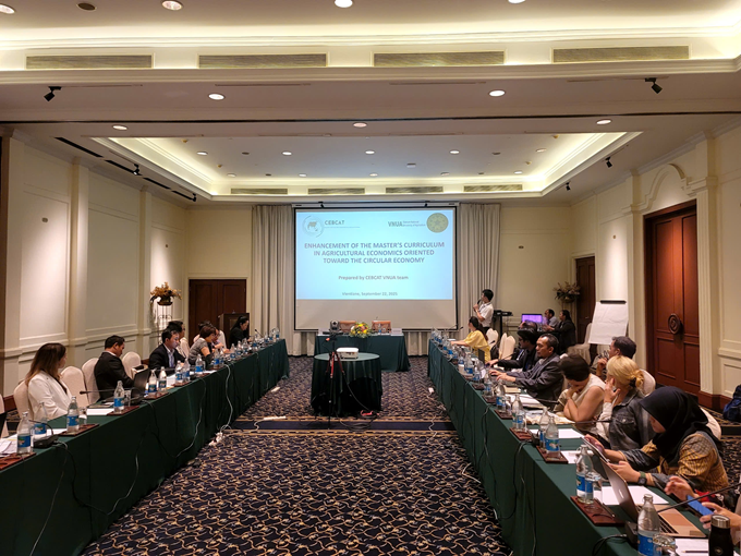 Từ ngày 22 đến 26/9/2025, đoàn công tác Học viện Nông nghiệp Việt Nam đã tham dự chương trình trao đổi nghiên cứu tại thủ đô Viêng Chăn (Lào). Sự kiện có sự tham gia của các trường đại học quốc tế như Đại học Santiago de Compostela (Tây Ban Nha), Đại học Thessaly (Hy Lạp) cùng một số trường đại học và viện nghiên cứu châu Âu. Ở khu vực Đông Nam Á, dự án CEBCAT quy tụ 6 trường đại học của ba quốc gia, gồm: Học viện Nông nghiệp Việt Nam và Đại học Bách khoa Hà Nội (Việt Nam); Đại học Quốc gia Lào và Đại học Savannakhet (Lào); Đại học Sebelas Maret và Đại học Nông nghiệp Bogor – IPB (Indonesia). Sự hợp tác này góp phần tăng cường gắn kết học thuật, thúc đẩy chia sẻ kinh nghiệm quốc tế và nâng cao năng lực chuyển đổi sang kinh tế tuần hoàn trong giáo dục đại học khu vực.