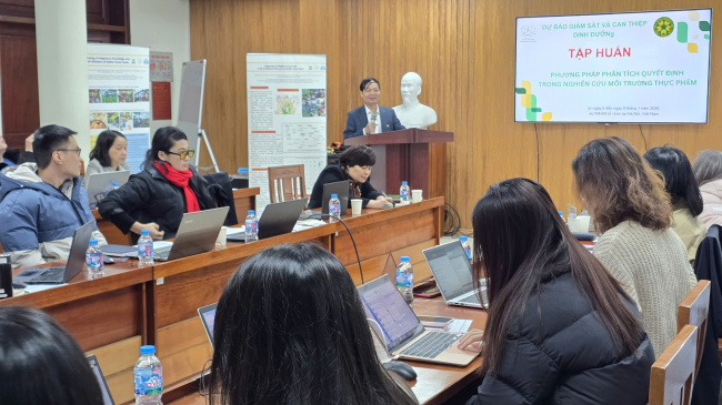 Ngày 06/01/2026, tại Học viện Nông nghiệp Việt Nam, Khoa Kinh tế và Quản lý (nhóm NCM Liên kết kinh tế và Phát triển thị trường), Học viện Nông nghiệp Việt Nam đã phối hợp với Đại học Bonn (Cộng hòa liên bang Đức) tổ chức Hội thảo tập huấn với chủ đề “Phương pháp phân tích quyết định trong nghiên cứu môi trường thực phẩm” (Decision Analysis Methods in Food Environment Research). Lớp tập huấn là một trong những hoạt động của dự án “Dự báo và Giám sát can thiệp dinh dưỡng” (Nutrition Intervention Forecasting and Monitoring - NIFAM). Học viện Nông nghiệp Việt Nam là một trong số những đối tác chính của dự án ở Việt Nam. Tại Học viện Nông nghiệp Việt Nam, PGS.TS. Phạm Văn Hùng – Giảng viên Khoa Kinh tế và Quản lý đóng vai trò là chủ nhiệm của dự án.