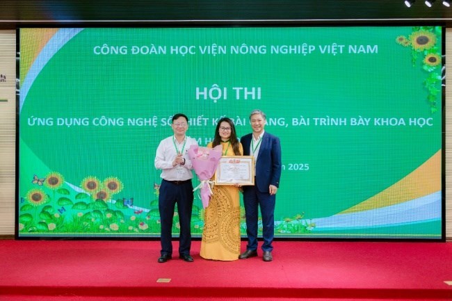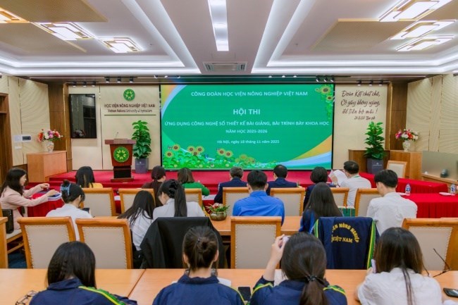 Ngày 18/11/2025, tại Hội trường Nguyệt quế, đã diễn ra vòng Chung kết Hội thi Ứng dụng công nghệ số thiết kế bài giảng, bài trình bày khoa học năm học 2025-2026 chào mừng kỷ niệm 43 năm Ngày nhà giáo Việt Nam 20/11 do Công đoàn Học viện Nông nghiệp Việt Nam tổ chức. Tham dự Hội thi là các giảng viên của Học viện, học viên và sinh viên tham gia nghe giảng tương tác trực tiếp tại Hội trường.